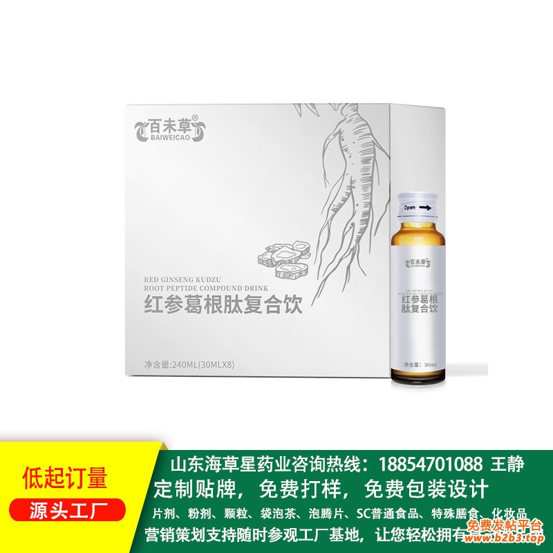红参葛根肽复合饮来样品加工、来配方加工产品研发、打样